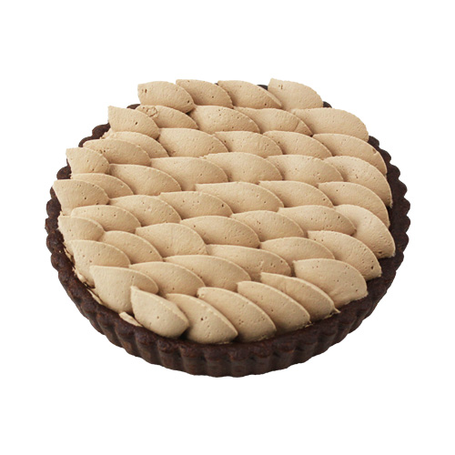 ザクザクとしたココアサブレの土台に、フルーティーな香りが特徴の高級チョコレート「マンジャリ」を使用した滑らかな口当たりのプリン生地を低温で焼き込みました。上には甘さ控えめのチョコクリームをたっぷりと絞っており、チョコ好きの方にはたまらないタルトです。